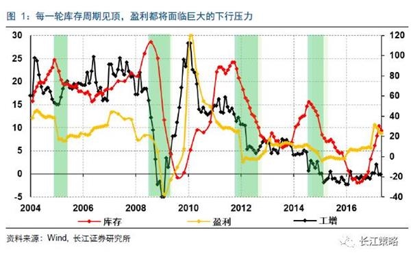 6月公布的所有宏观数据中,对我们而言,最重要的信号是工业产成品库存数据,5月同比增速见顶转弱。这一信号,是本轮补库周期的终结,还是上升通道中的扰动,对于未来盈利的路径意义重大。对于盈利,量、价、毛利率的波动是我们持续跟踪的常规变量,而置身于一轮库存上升周期之中,库存的顶点对盈利节奏有着不可替代的影响。每一轮库存拐点后,需求端将面临周期下行与企业去库的双重冲击,进而致使盈利步入加速下行通道。长江策略于上一轮库存周期顶点也发布了工业企业盈利报告《例外与例外的例外》揭示盈利的下行的风险。