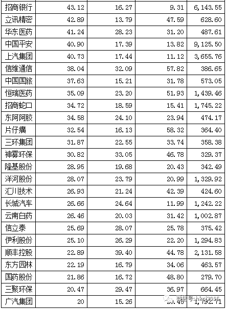 附表1:海通证券三大标准筛选“漂亮50”个股组合
