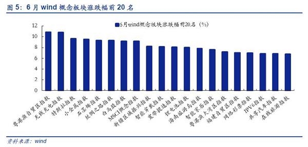 主题方面:6月热门主题涌现,多题材股受追捧。6月粤港澳自贸区涨幅居首,我们认为粤港澳地区由于独特的战略地理位置、政策和事件利好持续催化,后续仍具有良好的主题投资价值(详见《粤港澳大湾区,世界第四大湾区耀世而出》)。特斯拉主题一跃而起,携手锂电池、新能源汽车上扬,我们在市场上率先提示特斯拉中国合作伙伴的投资机会,静待7月份Model3成品亮相(详见《特斯拉的雄心,中国伙伴的机遇》)。同时,受益于有色板块行情走好,小金属指数表现亮眼(详见《锂钴带铝,有色虽晚必有成——每周行情要点回顾》)。另外,A股纳入MSCI刺激白马股指数和MSCI概念指数受资金追捧,多白马股创历史新高,建议关注MSCI覆盖的白马股(详见《A股投资需纳入国际化视野—评MSCI纳入A股》)。此外,前期由于我国成功开采可燃冰大热的相关主题遭遇集体回调,页岩气和煤气层、可燃冰、油气改革等指数垫底。