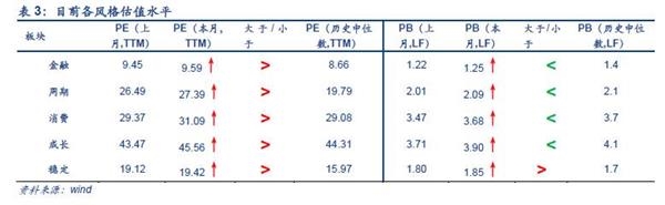 中信风格金融、周期、消费、成长、稳定风格PE均高于中位数,PB除了稳定风格高于中位数,其余风格均低于中位数。
