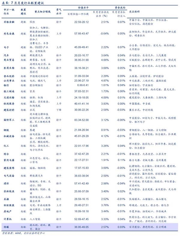 2. 7月行业配置建议:关注有色、新能源汽车、消费电子、保险
