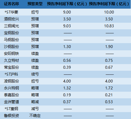 东方财富Choice数据显示,截至7月10日,已经有12家钢铁行业上市公司发布了业绩预告,其中酒钢宏兴等9家企业业绩预增,凌钢股份等3家为扭亏或减亏。