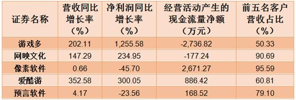 就这五家挂牌公司来看,其中有三家营收净利均在2016年迎来大爆发,分别是爱酷游、游戏多及网映文化。