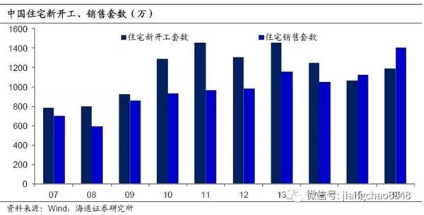 新开工13年见顶,销量16年或见顶。中国资本市场13年时已经形成共识,认为13年应该是中国地产市场的顶部,事后来看,13年的住宅新开工达到1400万套的顶峰,新房销售1160万套也是短期顶部,但是16年的新房销售预计会达到1400万套,比13年又多了20%,这其实已经与人口结构角度的刚性需求无关,而是彻头彻尾的金融现象。