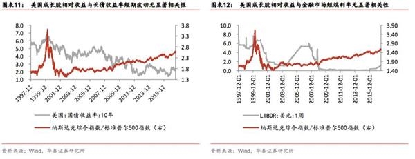2013年至今,A股成长相对收益与信用利差同向。2013年7月起,国内信用风险开始显著积累,信用利差持续走高至2016年7月,这三年是传统经济在四万亿之后最痛苦的三年,经济增速下台阶、工业部门杠杆高企、企业借新还旧、净资产收益率持续降低。而在这期间,A股成长板块在各类资产中,兼备弱周期性、低杠杆、低价格(估值)、高盈利预期、直接融资吸引力高的特点,受当时最核心的宏观问题之一—信用风险的影响最小,所以能够持续获取超额收益。