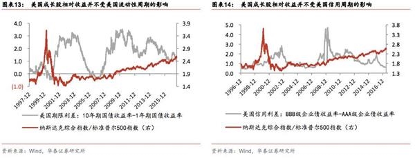A股成长板块的相对收益仍受信用周期和流动性周期的深刻影响,而美国在科网泡沫结束后,自2002年以来成长股持续的相对收益源自其经济结构,受信用周期和流动性周期的影响相对较小。国内经济仍在努力转型期间,A股成长板块的相对收益的判断仍需重视整个经济的信用溢价和流动性溢价的变化。从2013年至今,随着国内经济核心风险从信用风险向流动性风险的转变,成长板块作为一类资产,从优势转弱势,相对收益仍需等待。