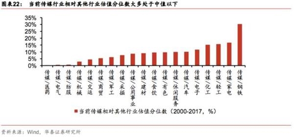 以传媒板块为例,2013年初其相对其他行业的估值处于合理区间:2013年初传媒板块相对轻工、医药、钢铁、有色、军工、建材、商贸等行业的相对PE百分位均在历史中值以下,估值相对其他行业较低。