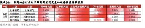 医药成长子行业中化学制剂利率敏感度最低、盈利敏感度最低,医疗服务、生物制药、医药商业与科创周期敏感度较高。