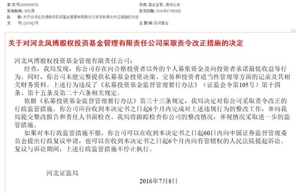 河北证监局列举,凤博投资存在3个问题:
