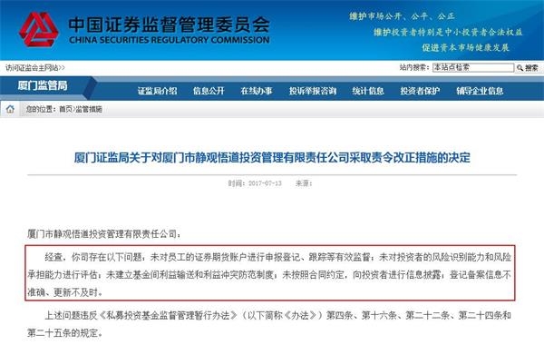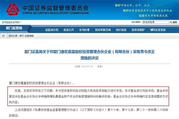 厦门证监局列举了厦门睿誉资产、厦门坤易投资、厦门市静观悟道投资、厦门鼎祥股权投资、厦门德宏嘉富股权投资等5家私募存在的问题,基金君归纳了一下,主要有几点: