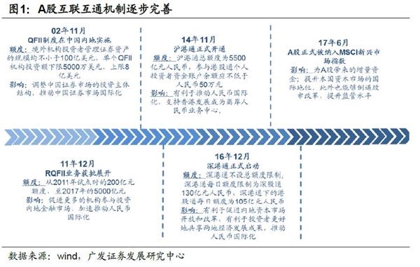 A股互联互通机制逐步完善,QFII、RQFII制度、沪深港股通相继实施,A股纳入MSCI指数也最终落地,A股估值国际化进程加速;