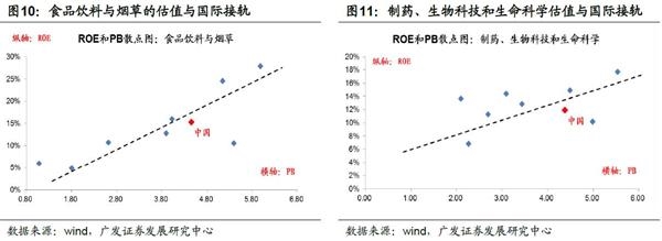 在ROE和PB动态平衡的新视角下,目前A股各行业的估值水平与国际比较表现各异,其中必需消费品估值已和国际接轨,经历上半年快速上涨后部分领域如食品饮料估值出现了一定的溢价。A股各行业中,估值基本与国际接轨的最具代表性的行业是必需消费品,部分行业如食品饮料、医药等存在小幅溢价,这与今年上半年极其“不确定”的宏观和流动性环境有关,“北上资金”的偏好又进一步拉大了相关公司尤其是消费白马的“确定性溢价”。