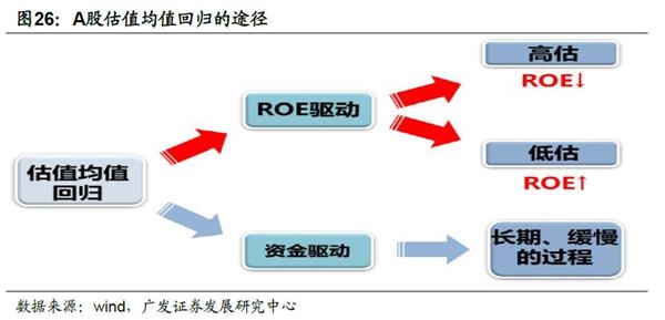 盈利能力(ROE)和资金面将驱动结构性高估(或低估)行业估值的均值回归。一方面,随着A股互联互通机制逐步完善,海外资金对A股的持股比例将不断抬升,改变A股的投资偏好,并进一步对原有估值体系产生持续的影响,但短期内增量的外资相对A股庞大的市值规模影响较为有限,因此估值折溢价回归的进程必定是缓慢的;另一方面,相关行业ROE趋势的变化,在短期内对估值的影响更为关键,ROE下行趋势中的高估行业和ROE上行趋势中的低估行业均可能面临估值的均值回归。