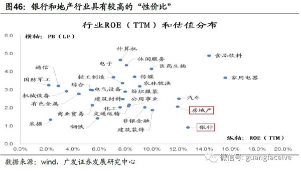 在申万一级行业中,从盈利和估值的匹配程度来看,银行和房地产行业也具有较高的“性价比”。我们在中期策略报告《精选“性价比”,寻找“长跑冠军”——广发策略2017年中期策略报告》(2017-6-24)中提示,站在现在的时点,消费白马的估值水平已经出现“泡沫化”倾向,建议从盈利和估值匹配的角度筛选更具“性价比”的二线蓝筹:银行+房地产。
