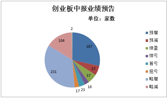 对于创业板目前的调整,说到底最终还是由于个股业绩增长不达预期。目前已有656家创业板个股公布了中期预告,其中预增187家,预减37家,续盈37家,续亏18家,首亏23家,扭亏17家,略增231家,略减104家,不确定为2家。