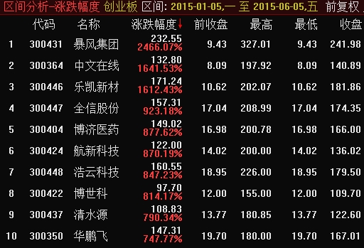 据中国证券报记者统计,今年以来仍有15家创业板上市公司(剔除次新股)股价逆势上涨了20%以上。
