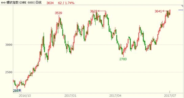 但是,进入到4,5月份之后,施工淡季过后,去年的50万亿固定资产投资,今年年初已经进入计划施工,开始陆续真正进入施工期了,需求开始明显提升。而产量却下去了,所以,库存以飞快速度开始降低,马上就创了历史新低。当然,供给侧改革措施限制了产量快速扩张,于是,大宗商品价格开始出现报复性反弹。