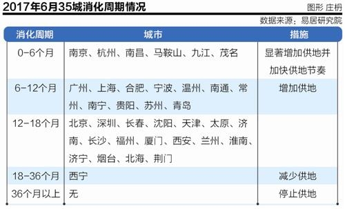 易居研究院的数据显示,35个城市中,消化周期少于6个月,需要显著增加供地并加快供地节奏的有南京、杭州、南昌、马鞍山、九江、茂名;消化周期控制在6-12个月,需要增加供地的有广州、上海、合肥、宁波、温州、南通、常州、南宁、贵阳、苏州、青岛;消化周期控制在18-36个月,需要减少供地的只有西宁,其余17座城市均处于正常区间。