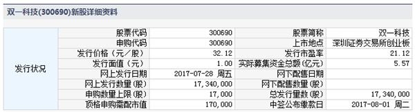 双一科技7月28日发行申购上限1.7万股
