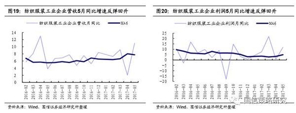 下游行业:消费复苏,零售数据尤抢眼。家电行业:6月家电音像累计零售额和白色家电销售额同比增速继续上升。商贸零售:同比增速数据维持高位水平,社会消费品零售总额6月同比增速达到11%,创2016年以来同比增速新高。食品饮料:白酒产量6月同比增速大幅上升,强势行情延续。纺织服装:棉花价格震荡上行,但受益于消费复苏,纺服企业营收利润双双反弹。房地产:投资同比微涨,销售大幅上涨,6月房地产销售面积的超预期主要是由于一二线城市房地产成交走弱的背景下三四线城市成交热度显著上涨,未来房地产投资销售能否继续走强取决于三四线城市房地产需求动能的可持续性。