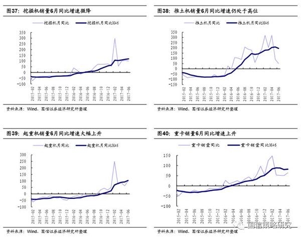 起重机、重卡销量同比增速上升,挖掘机、推土机同比增速下降但总体仍位于高位。挖掘机销量6月同比增速100.8%,略低于上月105.6%的同比增速,推土机销量6月同比增速51.1%,低于上月90.3%的同比增速,但仍维持较高增速。起重机销量99.9%,高于上月61.9%的同比增速。重卡销量6月同比增速64.4%。