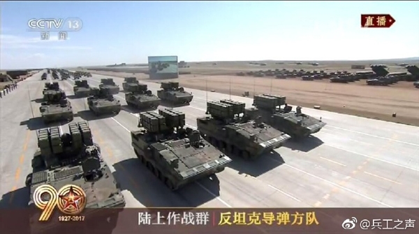 当天上午,兵器工业集团的99A主战坦克、04A履带式步兵战车、08式轮式装甲步战车、122毫米自行加榴炮、155毫米自行炮、远程火箭炮、红箭10、空降车、北奔重汽底盘等多款现役装备成功接受检阅。