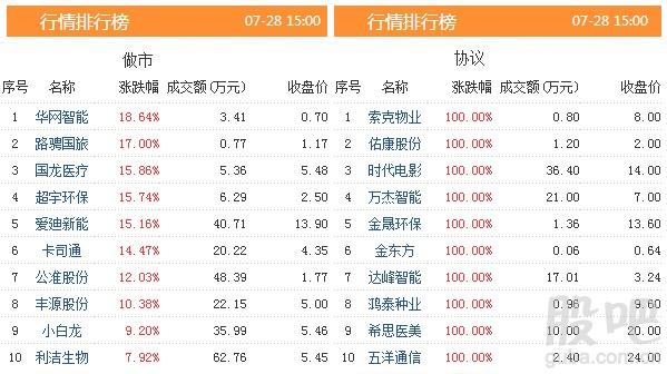 28日共有866只股票发生交易,成交金额9.82亿元,做市转让成交1.77亿元,协议转让成交8.04亿元,成交数量14908.03万股。