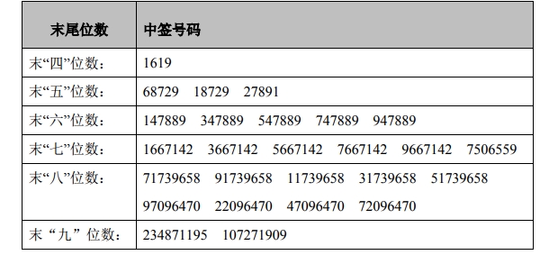 凡参与网上定价发行申购深圳市澄天伟业科技股份有限公司首次公开发行A股股票的投资者持有的申购配号尾数与上述号码相同的,则为中签号码。中签号码共有34,000个,每个中签号码只能认购500股深圳市澄天伟业科技股份有限公司A股股票。