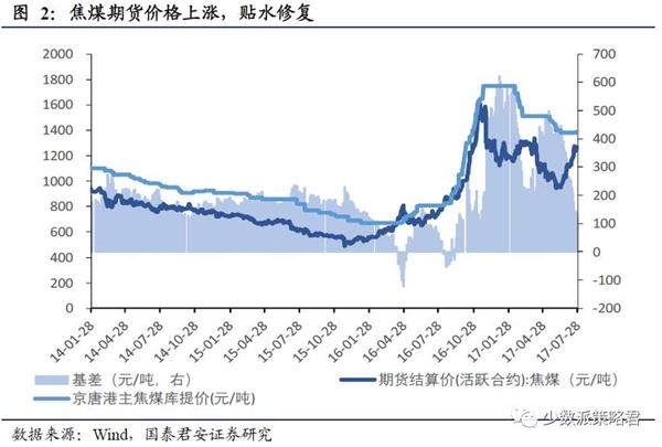 期货贴水修复与周期股表现同步。近期周期股表现强势,源于经济和盈利的悲观修复,其中盈利的悲观修复与周期品价格关系密切。本轮价格上涨中,螺纹钢、焦煤、动力煤期货价格上涨幅度超过了现货价格,期货贴水大幅修复,截止7月28日,螺纹钢基差从6月1日的高点673元/吨下降至215元/吨;焦煤基差从5月12日的高点499.5元/吨下降至最新的118.5元/吨,动力煤基差从5月5日的最高点104元/吨下降至最新的19元/吨。