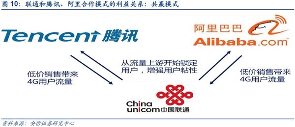 不仅如此,据中国通信网消息,中国联通近期决定分别在广东深圳成立中国联通电子商务腾讯合作运营中心,在浙江杭州成立中国联通电子商务阿里合作运营中心,进一步加深与腾讯和阿里的合作。联通与腾讯和阿里此次进一步合作一方面是因为双方自身的战略互补关系在前期试水合作中实现了共赢,展现了广阔的合作前景,另一方面也为后期的深入合作以及在混改方案中引入阿里、腾讯打下良好基础。