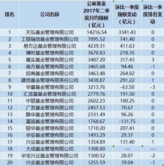 毫无悬念,论起第二季度的月均资管规模,天弘基金凭借14216.54亿元蝉联状元。