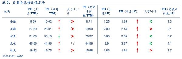 中信风格金融、周期、消费、稳定风格PE均高于中位数,成长等于中位数,PB除周期和稳定风格高于中位数,其余风格均低于中位数。