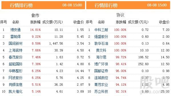 从新三板股票的市场表现来看,今天有4只股票涨幅超过100%,共有44只个股涨幅超过30%。