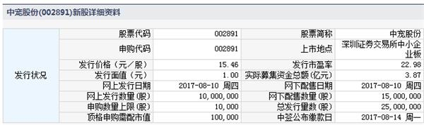 根据交易所公告,烟台中宠食品股份有限公司于2017年8月10日进行网上和网下申购。本次公开发行股票数量为2,500 万股。网下初始发行数量为1,500 万股,为本次发行数量的 60%;网上初始发行数量为1,000 万股,为本次发行数量的40%。本次发行股份全部为新股,不安排老股转让。
