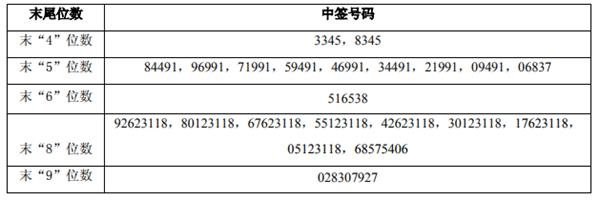 凡参与网上发行申购春风动力A股股票的投资者持有的申购配号尾数与上述号码相同的,则为中签号码。中签号码共有30,001个,每个中签号码只能认购1,000股春风动力A股股票。