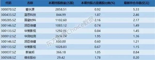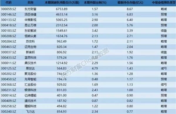 国家队持有的部分创业板个股