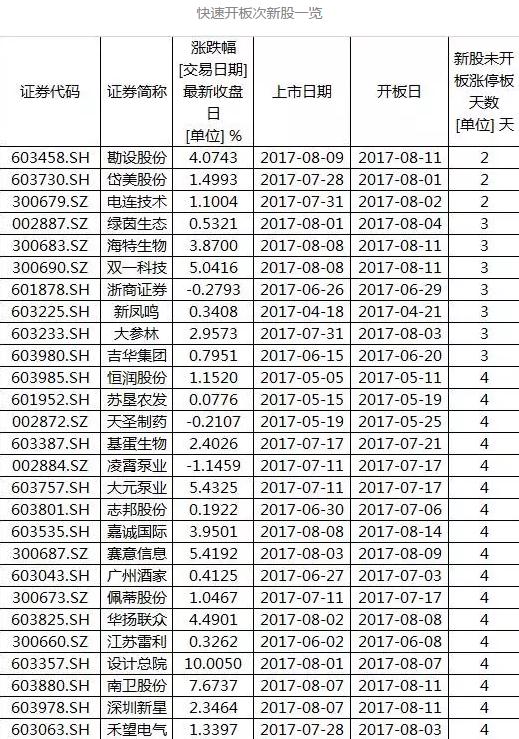快速开板次新股一览