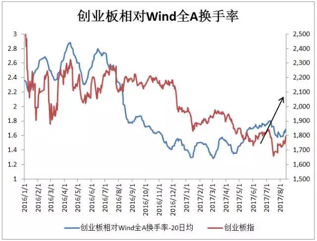 2、从创业板换手率指标来看,当下也有了上行势头。
