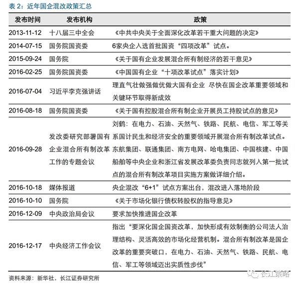 2.上层建筑:回溯历史,国有企业的改革绝大部分时刻都是被时代发展给倒逼的。在改革进程中,往往也伴随着各类资本的制度套利。混合所有制改革仍然需要关注,虽然试点案例获得成功,但是上层建筑中法制及监管体系尚未落地的情况之下,形成泛运动化浪潮,没有夯实上层建筑的改革可能将出现问题。
