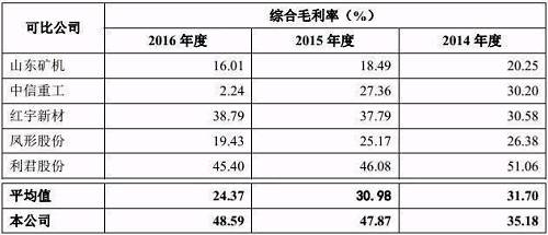 2014年-2016年公司主要产品橡胶耐磨制品的毛利率分别为59.73%、57.59%、61.11%,在近两年矿业生产企业不景气的情况下,橡胶耐磨制品能保持上述高毛利率,发审委也对此提出疑惑。
