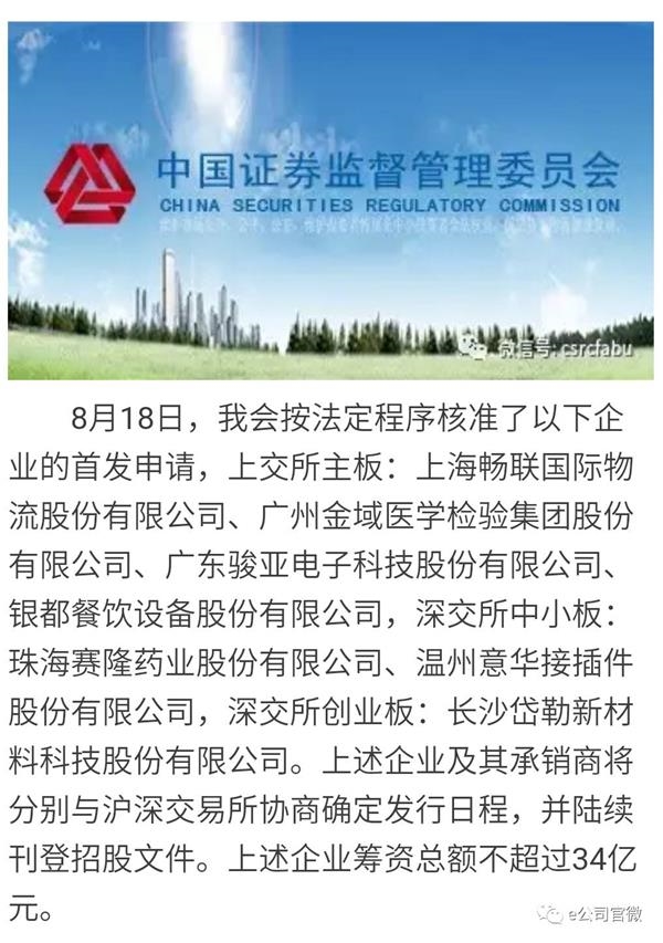 8月18日,证监会核发7家企业IPO批文,筹资总额不超过34亿元。这已经是证监会连续第13周下发的IPO批文数量少于10家。
