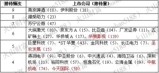 例:燕京啤酒在上述期间,共获18家机构9次调研