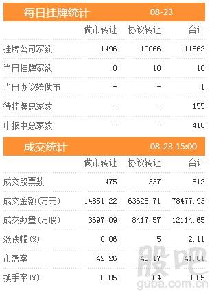 昨日新增挂牌企业10家,截至2017年8月23日,挂牌企业总数达到11562家。