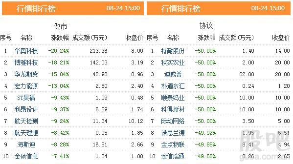 昨日共有806只股票发生交易,成交金额5.35亿元,做市转让成交1.75亿元,协议转让成交3.60亿元,成交数量9768.10万股。