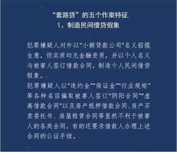 看了上面的案例对于套路贷你是不是还有不解的地方,比如为什么实际只拿到5000元,却要“空放”16万元,为什么轻易的就将房产过户给别人。结合上海警方给出的“套路贷”的五大作案特征,你会发现其中的套路之深,让人不得不一步步踏进陷阱。