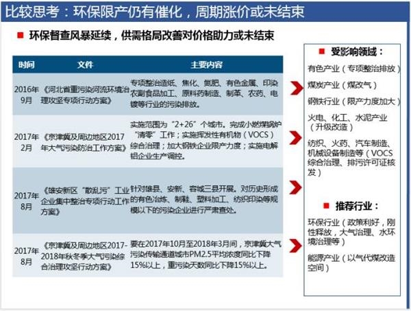 金九银十和环保限产的催化不能忽视,但周期品估值上冲后,“冲锋陷阵”的动力在减弱;市场轮动将趋于均衡,中小创板块的绩优成长或承接市场热点转移;环保限产催化对周期仍有催化;金融去杠杆阶段性成效显现,基本面改善、估值合理的大金融板块仍具有配置价值。