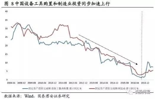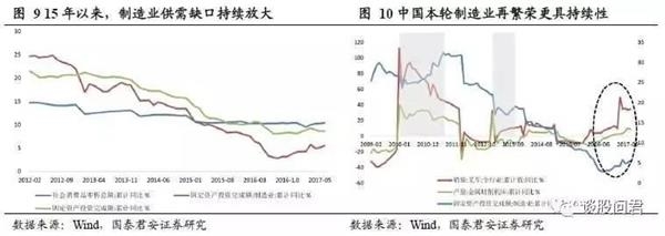 全球朱格拉周期开启,中国制造业再繁荣。数据显示,17年1-7月几乎所有国家的制造业都在扩张,并且中国、美国、日本等全球主要经济体纷纷出现了设备投资增速回升的现象,中国制造业出口交货值累计增速创下5年新高。我们认为,受设备更替和资本开支驱动的全球朱格拉周期已开启,中国制造业内温外暖,得益于国内外朱格拉周期共振,再繁荣将更具持续性。