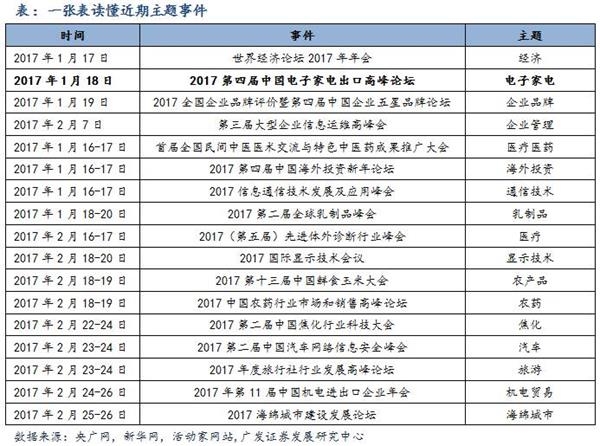 本周重磅主题事件包括:2017年1月18日的2017第四届中国电子家电出口高峰论坛(电子家电).