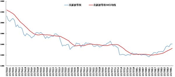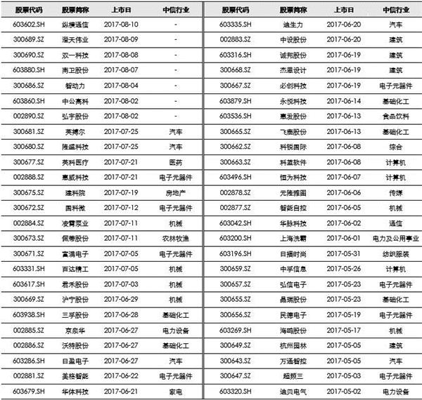 次新股板块自2017年3月27日起一路下跌,中间略有小幅反弹,但未能改变整体趋势。但近三周自8月11日起,次新股大幅好转,截至9月1日,次新股指数、深次新股指数分别上涨25.0%和14.6%,同期沪深300和中证500涨幅仅3.1%和3.8%。
