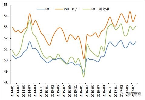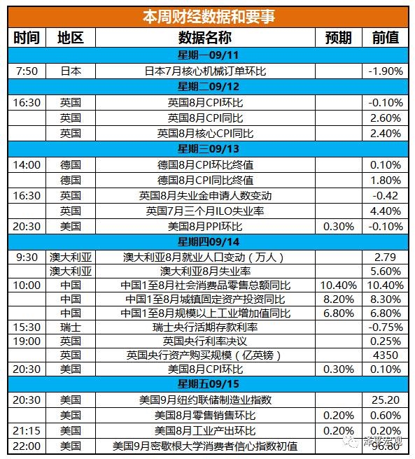 国内经济:PMI强劲外需复苏,商品大涨企业盈利改善。8月制造业PMI51.7,超过预期的51.3和前值51.4,为今年次高水平,连续13个月在荣枯线上方。在外需向好、内需偏稳背景下,因人民币明显升值,以美元计,8月出口同比5.5%,前值7.2%,进口同比13.3%,前值11%。8月CPI同比1.8%,前值1.4%;PPI同比6.3%,前值涨5.5%,双双超市场预期大幅回升,但在新周期框架的解释范围内。受猪周期底部回升、上游向下游边际传导、天气因素致蔬菜价格上涨等影响,CPI超预期回升。大宗商品价格在近期再度大幅上涨,原因是去产能、清除“地条钢”和环保督查以及2+26城市大气污染防治计划等。近期地供应加快回升;9月发电耗煤量同比增21.8%,高于8月的13.2%。螺纹钢价格震荡上行,周环比上升2.0%。有色价格持续上涨,机械市场销售持续火爆。9月初鲜菜价格趋稳,猪价上涨。